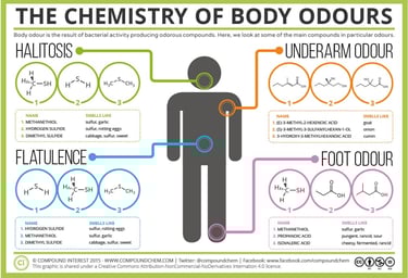 Microbial Origins of Body Odor written byKanika Khanna, Ph.D. with quote by Patrick Süskind "Odors have a power of persuasion stronger than that of words, appearances, emotions or will."